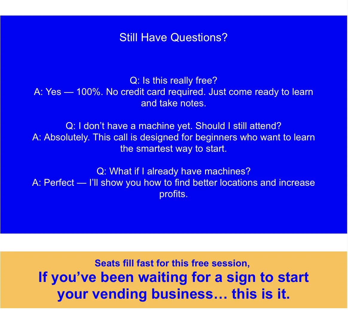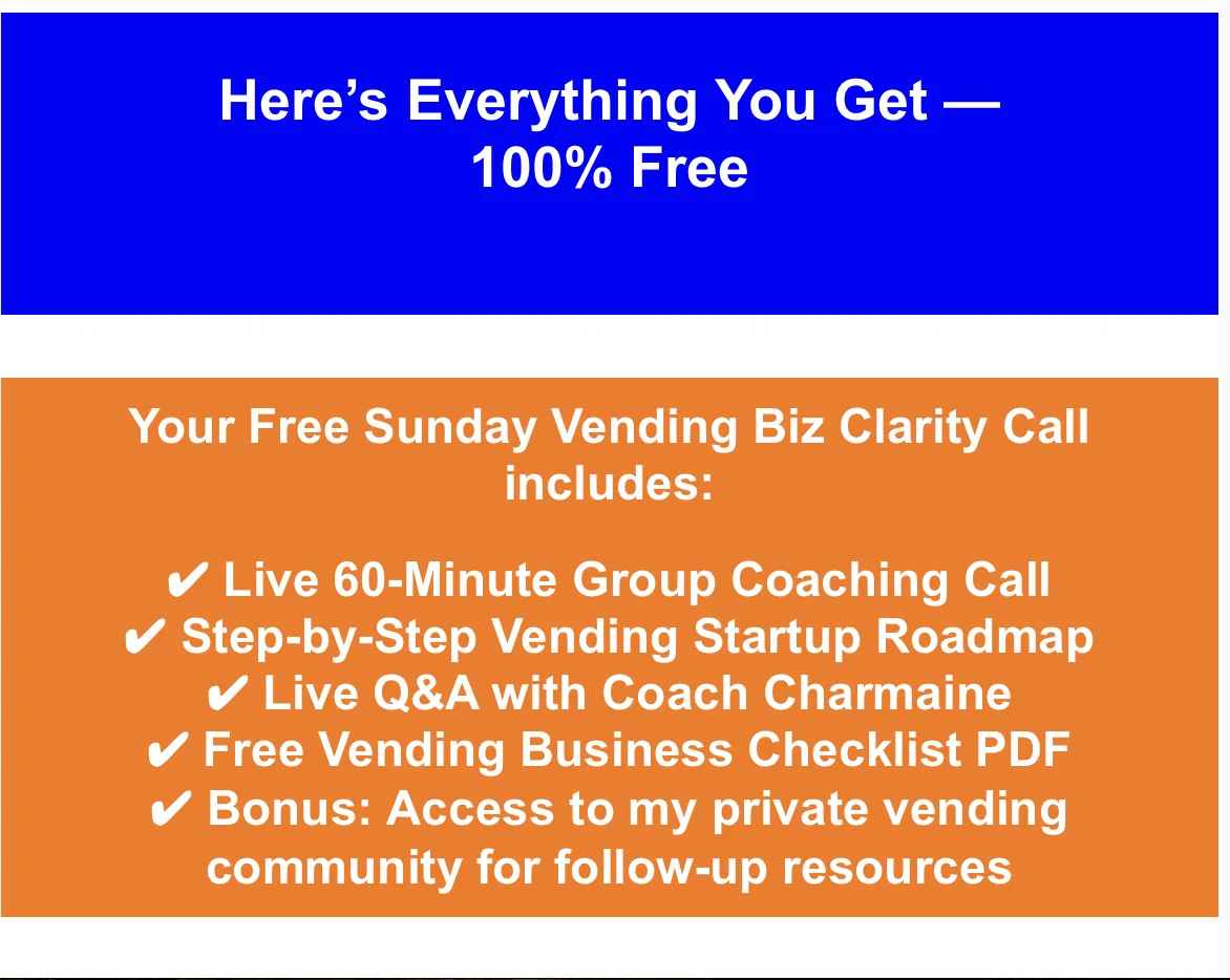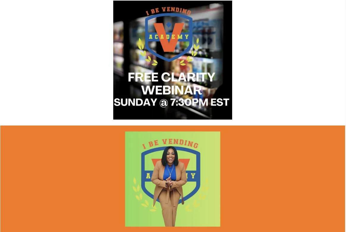 FILL OUT FORM BELOW & SECURE YOUR SEAT FOR THE UPCOMING VENDING CLARITY WEBINAR HAPPENING THIS SUNDAY AT